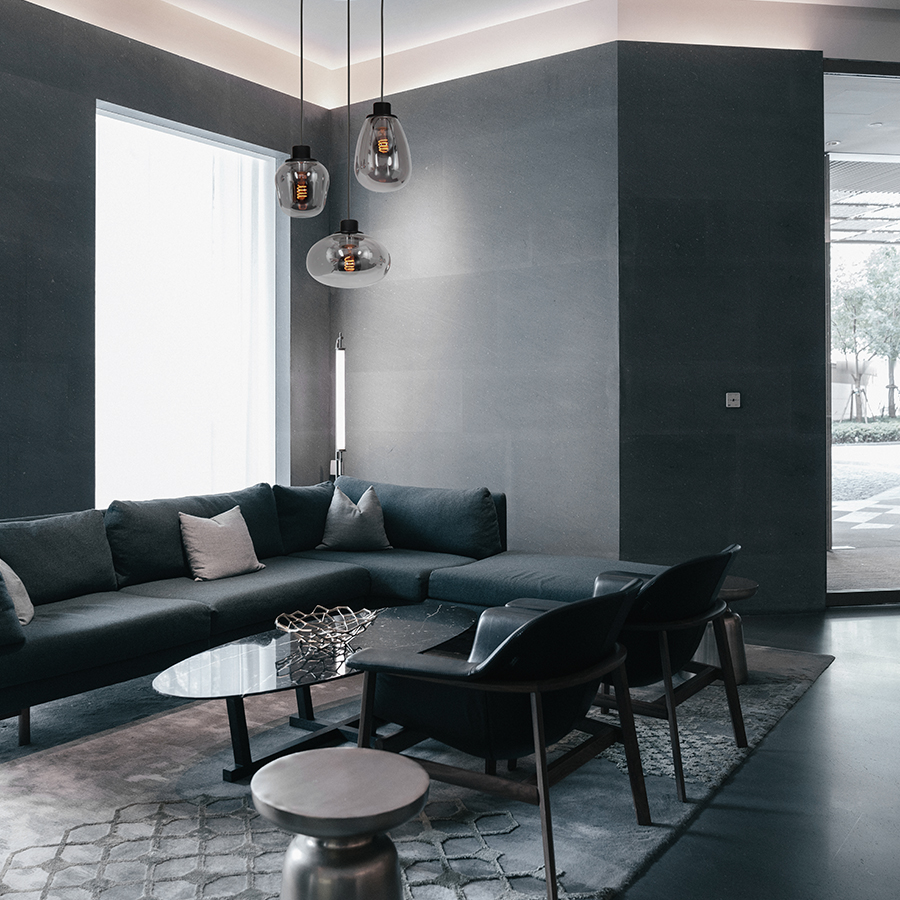 Die Reflexion Familie ist besonders bekannt für ihre einzigartigen, tropfenförmigen Gläser, die in zwei edlen Farben erhältlich sind: Amber und Smoke. Diese Gläser sind leicht spiegelnd, was den Lampen auch im ausgeschalteten Zustand eine auffällige Präsenz verleiht. Die tropfenförmigen Gläser sind das markante Designelement dieser Familie und sorgen für eine unverwechselbare visuelle Wirkung.