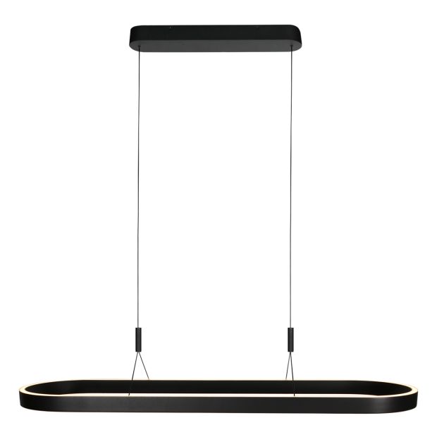 Die Hängeleuchte Mykty 4205ZW kombiniert ein stilvolles ovales Design mit 120 cm Breite mit kraftvoller und atmosphärischer Beleuchtung. Dank der mattschwarzen Oberfläche und der schlichten, eleganten Linienführung passt diese Lampe perfekt in moderne und industrielle Einrichtungen.