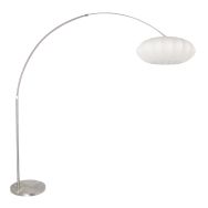Staalkleurige vloerlamp booglamp Sparkled Light 9674ST met wit linnen taps toelopende kap
